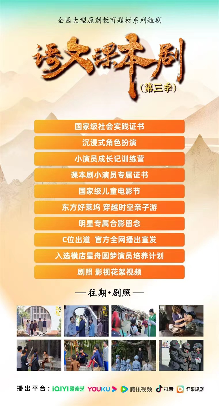 弘扬传统文化·传承中华美德,语文课本剧第三季,实力派小演员全国招募中!