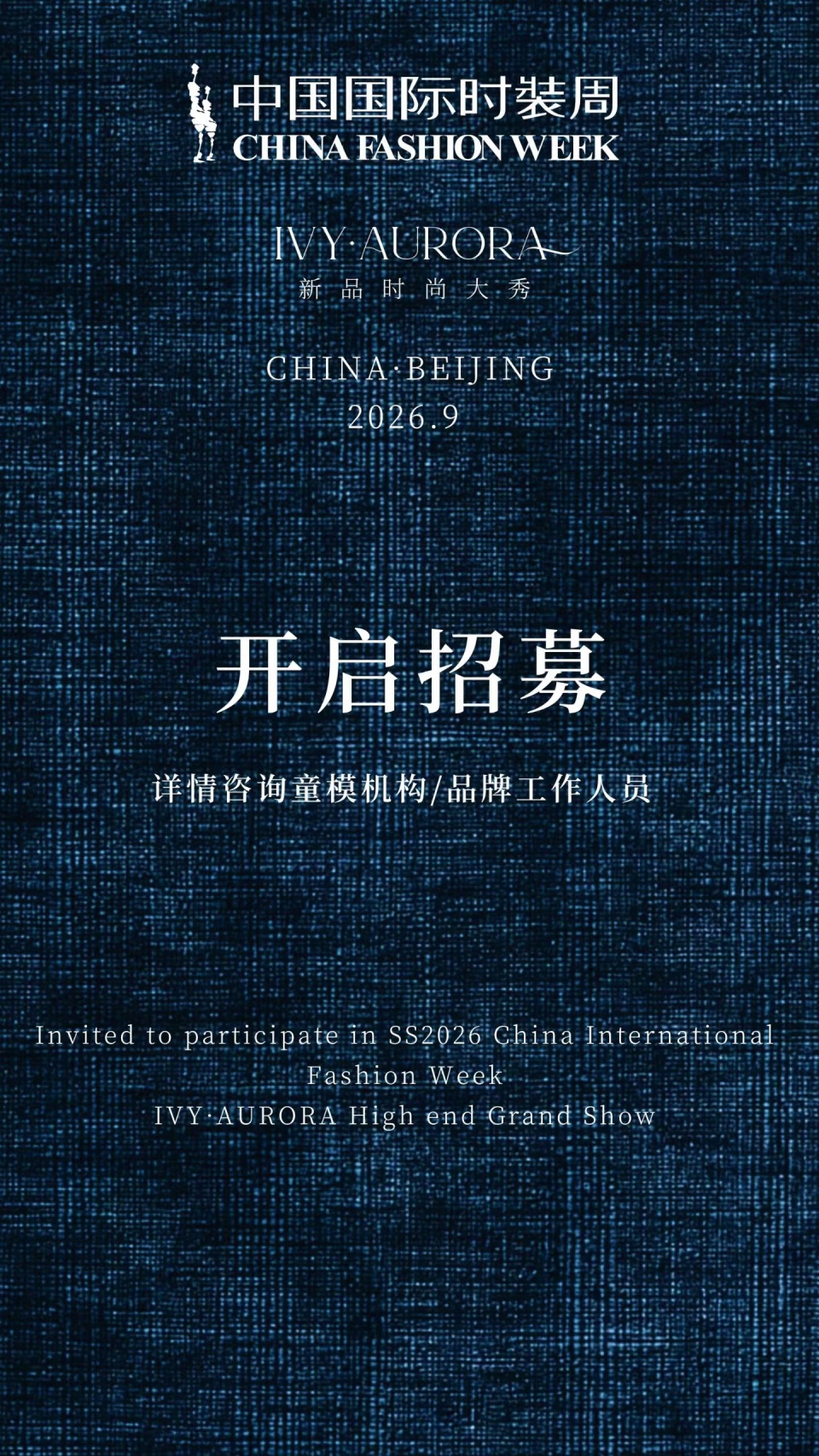 SS27中国国际时装周IVY·AURORA新品时尚大秀童模招募
